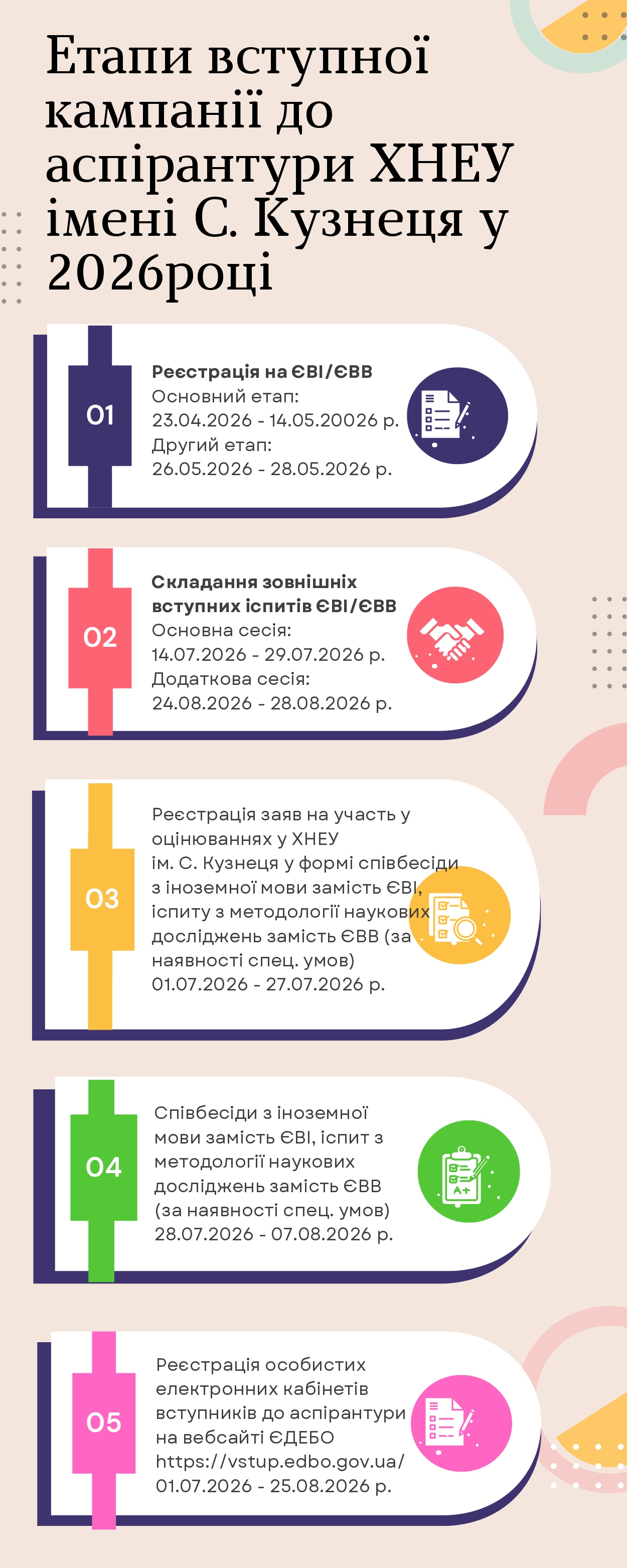 Етапи вступної кампанії до аспірантури ХНЕУ ім. С. Кузнеця у 2026 р.