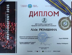 Завдяки глибоким знанням, креативному підходу та інноваційним ідеям, студентка 2 курсу спеціальності «Харчові технології» Лілія Рюмшина отримала срібну медаль за авторську роботу «Чотири сезони».