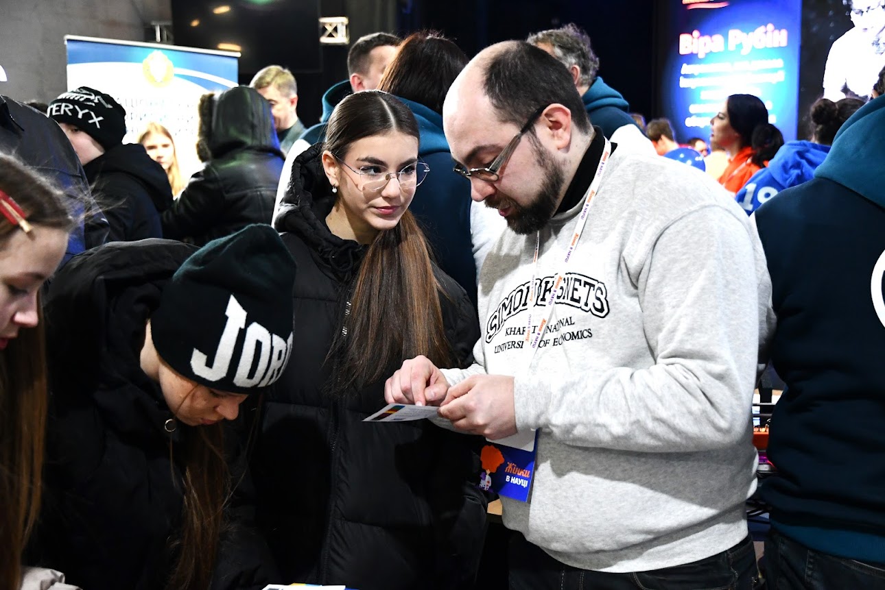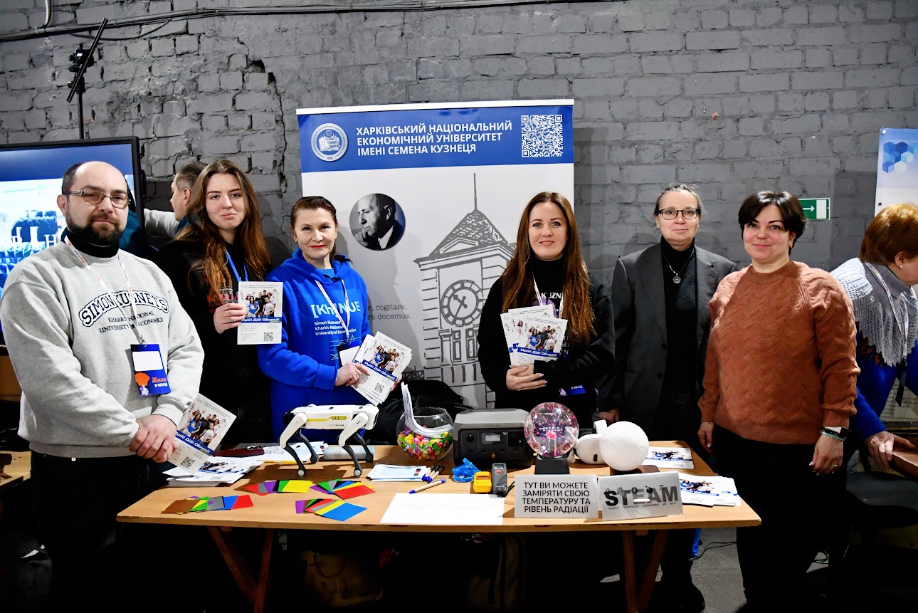 У межах заходу діяла інтерактивна STEM-виставка, де ХНЕУ ім. С. Кузнеця презентував STEAM-лабораторію та проєктивну кольорову методику профорієнтаційної роботи з абітурієнтами. Команда університету продемонструвала сучасні підходи до навчання, аналітики й розвитку креативних індустрій, а також можливості для майбутніх вступників.