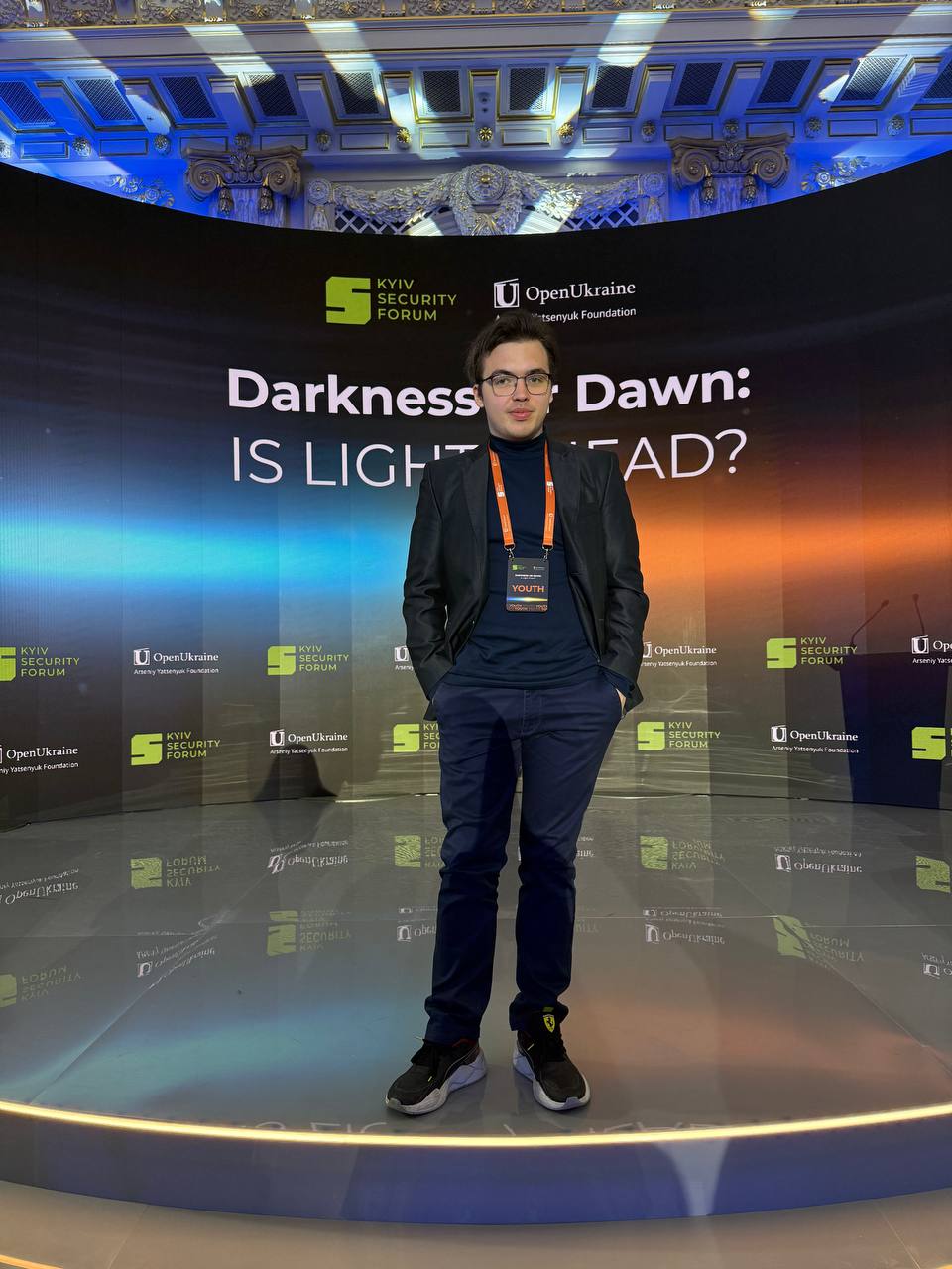 Студент 3 курсу спеціальності 291, ННІ міжнародних відносин, Родіон Оверко взяв участь у Київському безпековому форумі Kyiv Security Forum від Open Ukraine Foundation, що відбувся 23–24 квітня в Києві. Це одна з провідних міжнародних платформ для обговорення питань глобальної та національної безпеки, яка щороку об’єднує політиків, військових, дипломатів і експертів з різних країн.