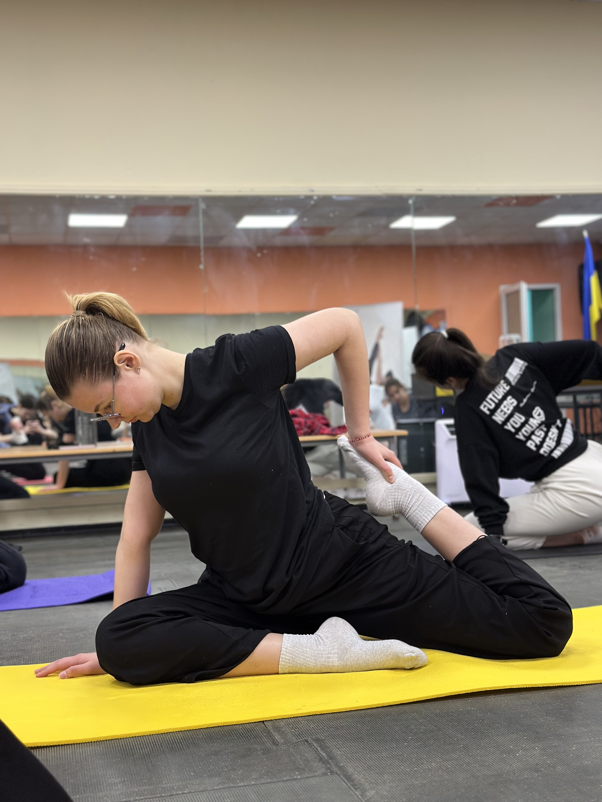 Після активної танцювальної частини настав час для відновлення — стретчинг із Марією Радюк. Це була чудова можливість розслабитися, зняти напругу, попрацювати над гнучкістю тіла та відчути гармонію між тілом і думками.