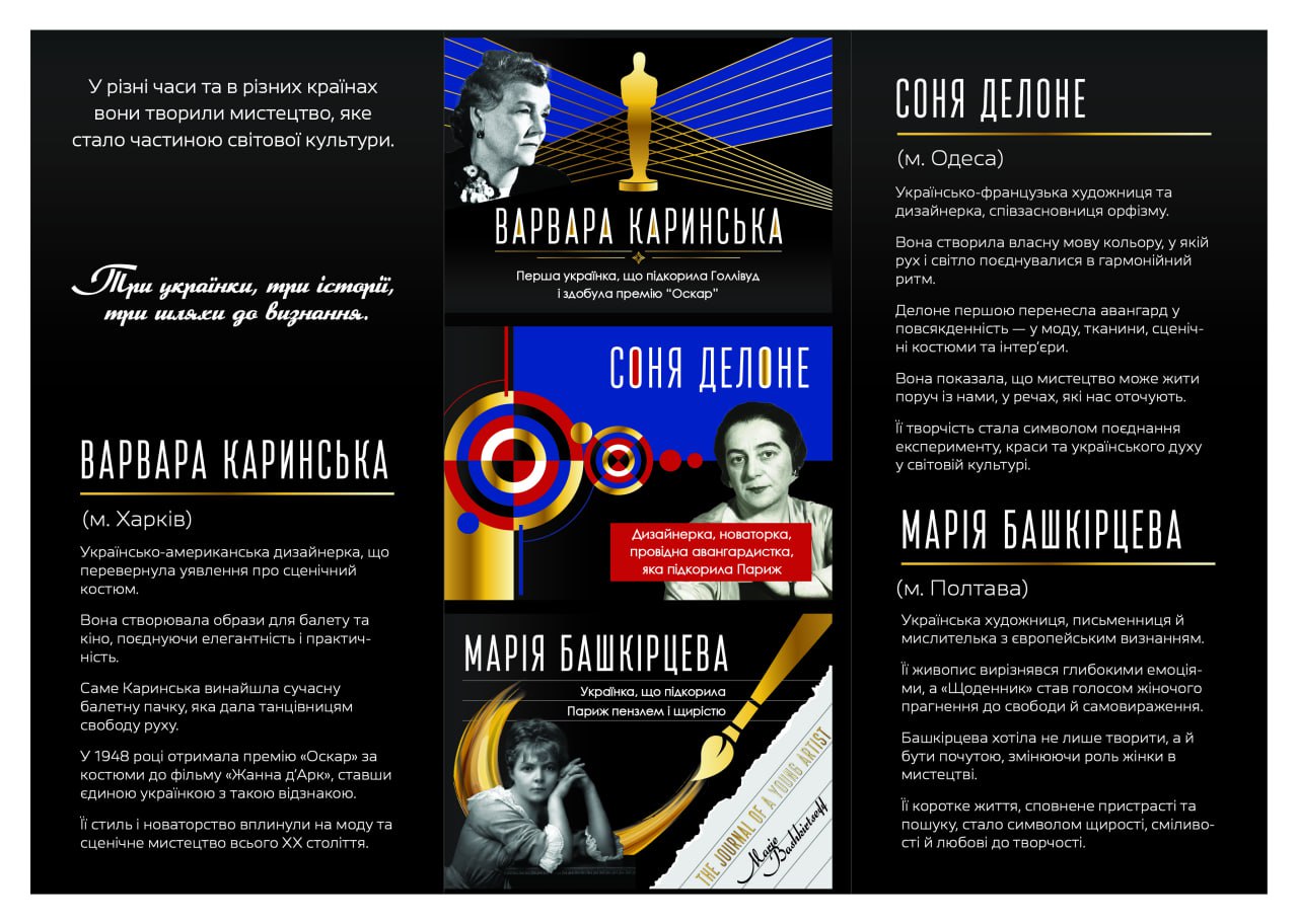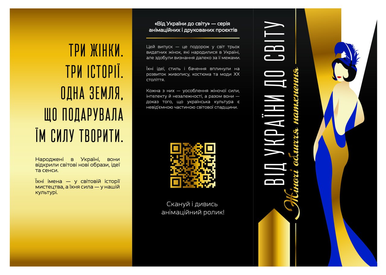 Розроблена Анастасією брошура спрямована на популяризацію творчості визнаних мисткинь українського походження — Варвари Каринської, Соні Делоне та Марії Башкірцевої, які зробили вагомий внесок у розвиток світової культури.