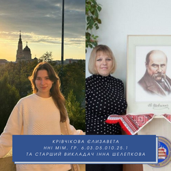 • Крівчікова Єлизавета (І місце) – 1 курс, навчально-науковий інститут менеджменту та маркетингу (викладач – ст. викладач Інна Шелепкова);