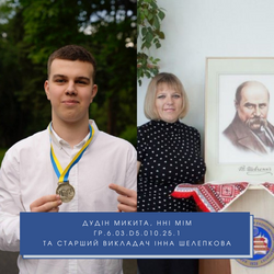 • Дудін Микита (ІІ місце) – 1 курс, навчально-науковий інститут менеджменту та маркетингу (викладач – ст. викладач Інна Шелепкова);