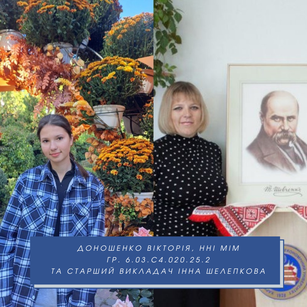 • Доношенко Вікторія (ІІІ місце) – 1 курс, навчально-науковий інститут менеджменту та маркетингу (викладач – ст. викладач Інна Шелепкова);