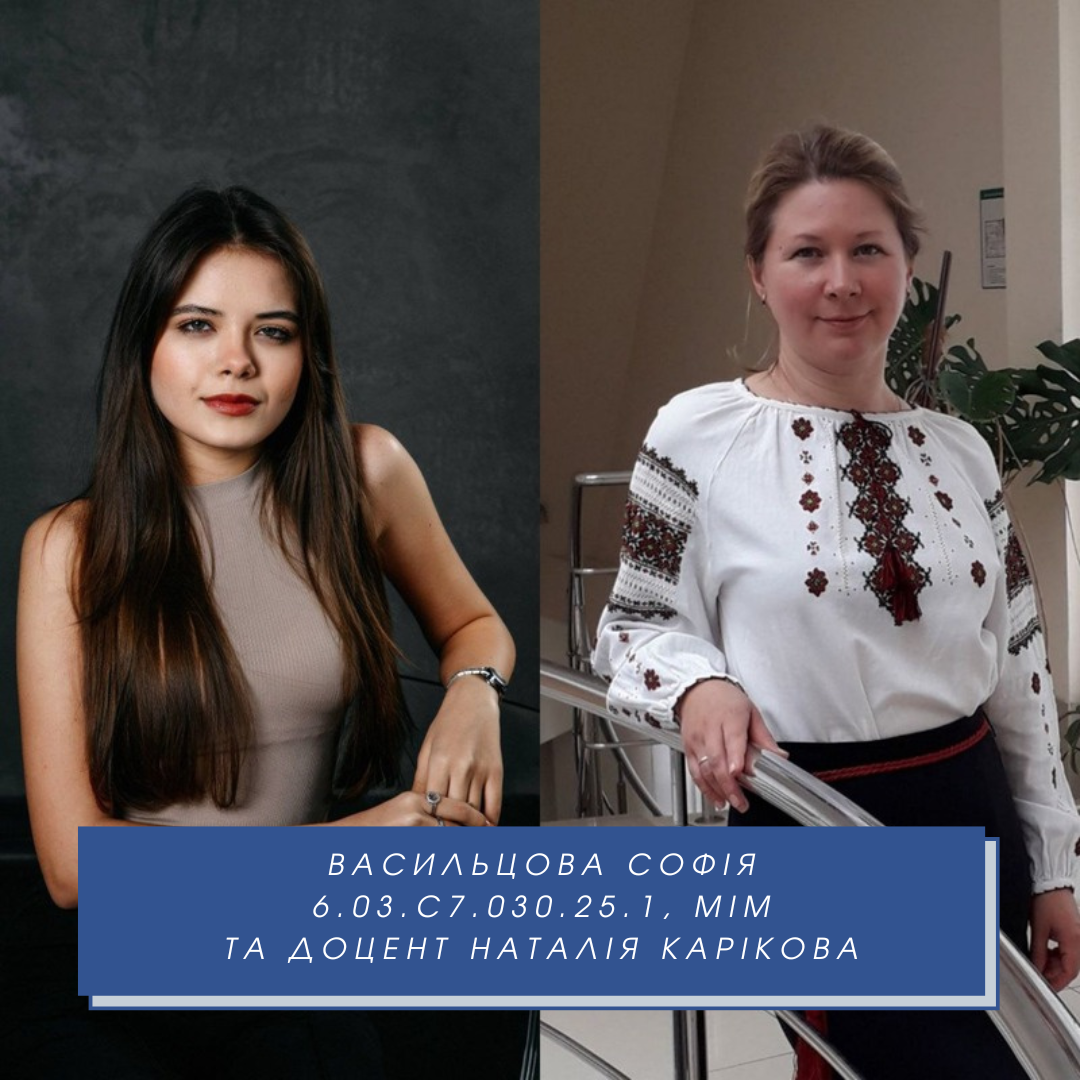 • Васильцова Софія (ІІ місце) – 1 курс, навчально-науковий інститут менеджменту та маркетингу (викладач – доц. Наталя Карікова);