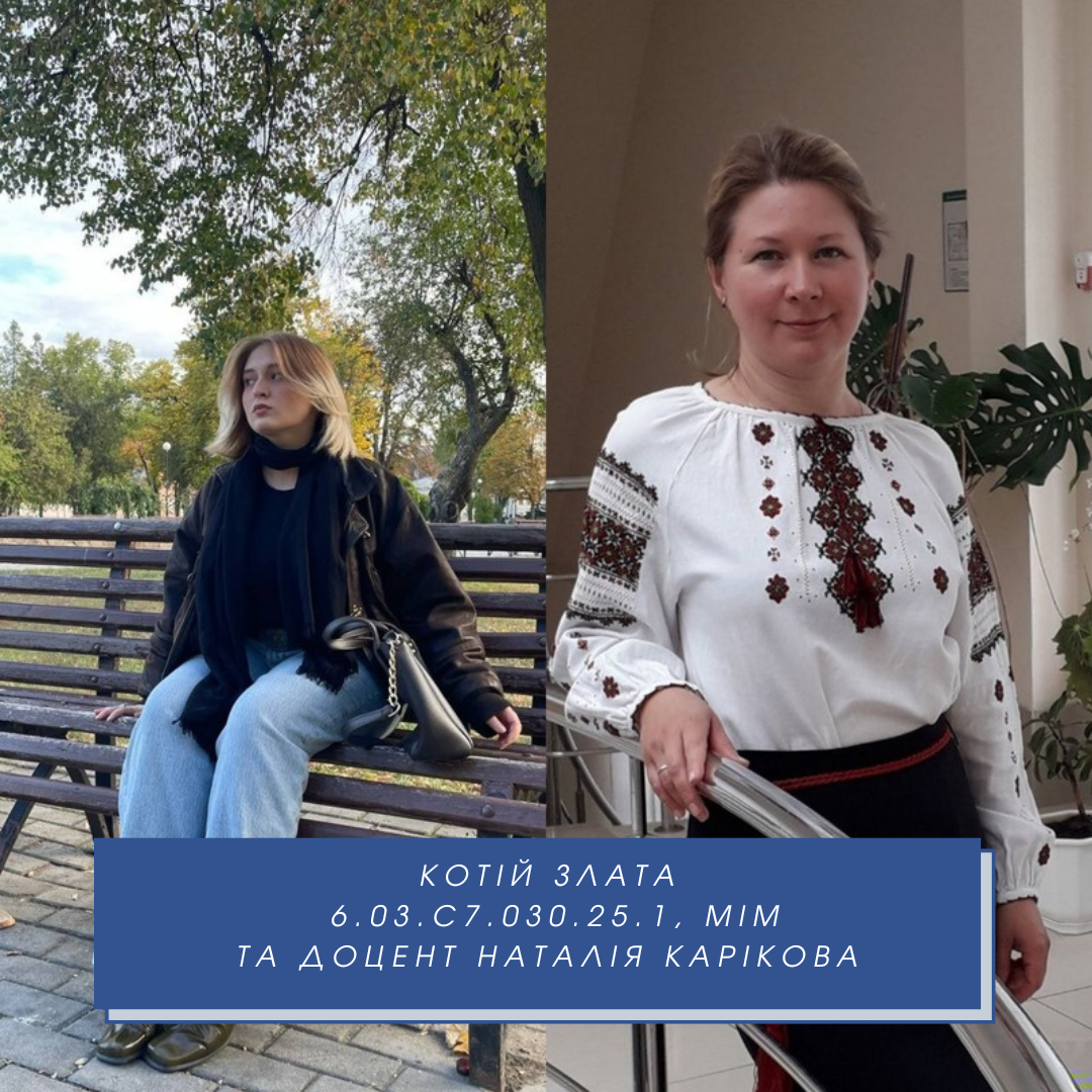 • Котій Злата (ІІ місце) – 1 курс, навчально-науковий інститут менеджменту та маркетингу (викладач – доц. Наталя Карікова);