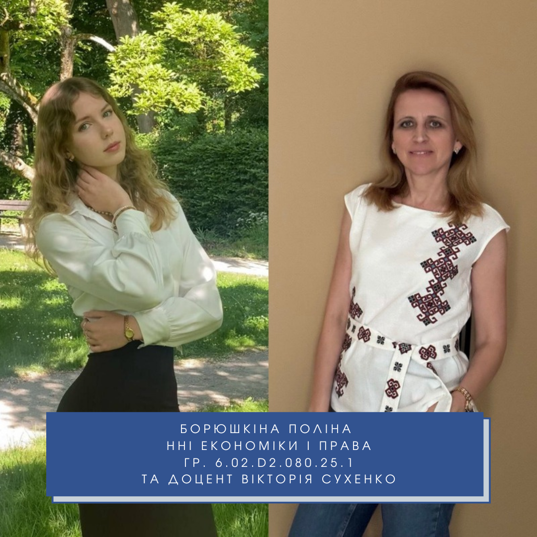 • Борюшкіна Поліна (ІІІ місце) – 1 курс, навчально-науковий інститут економіки і права (викладач – доц. Вікторія Сухенко).