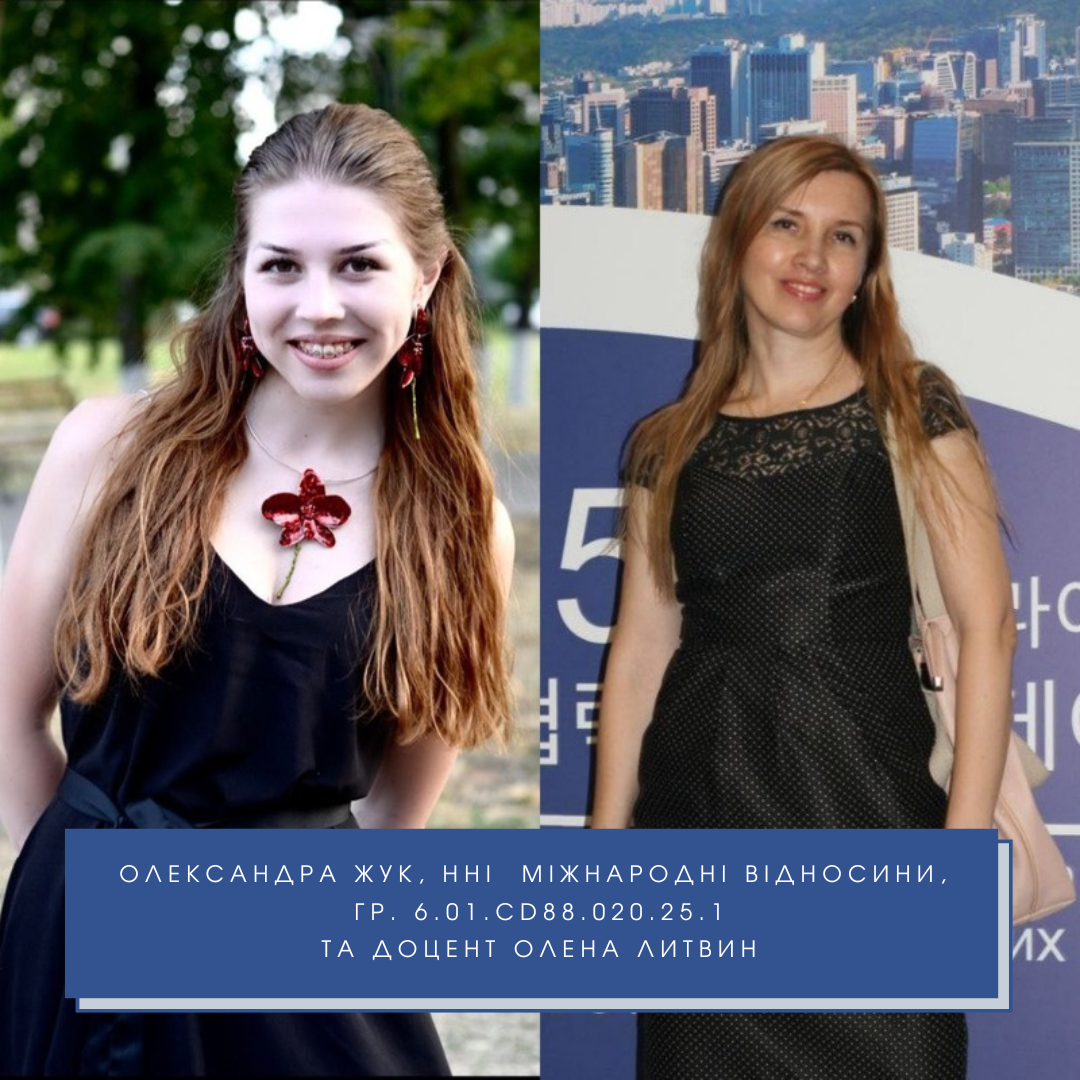 • Жук Олександра (І місце) – 1 курс, навчально-науковий інститут міжнародних відносин (викладач – доц. Олена Литвин);