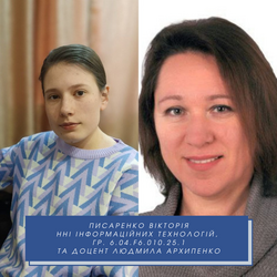 • Писаренко Вікторія (ІІІ місце) – 1 курс, навчально-науковий інститут інформаційних технологій (викладач – доц. Людмила Архипенко).