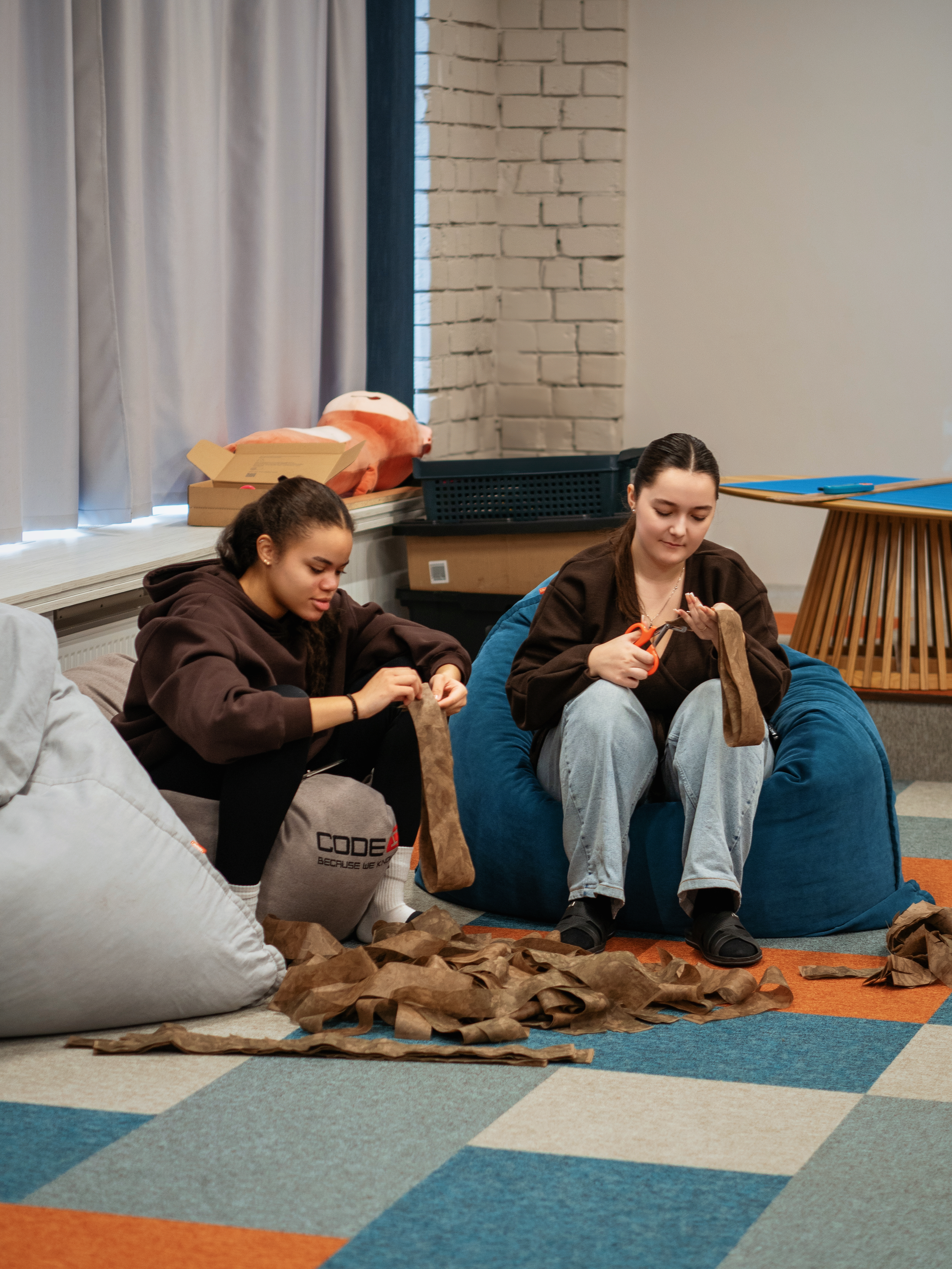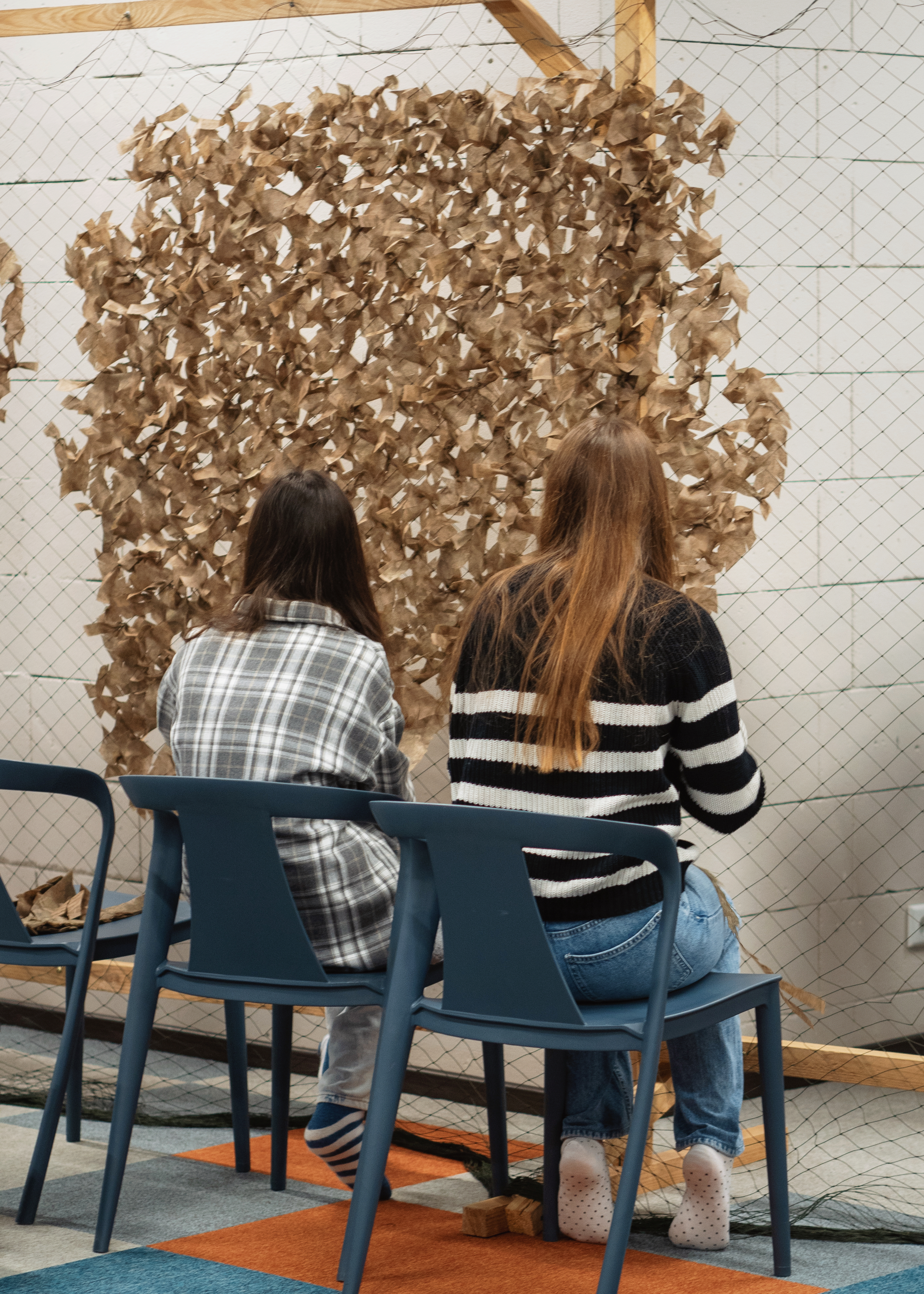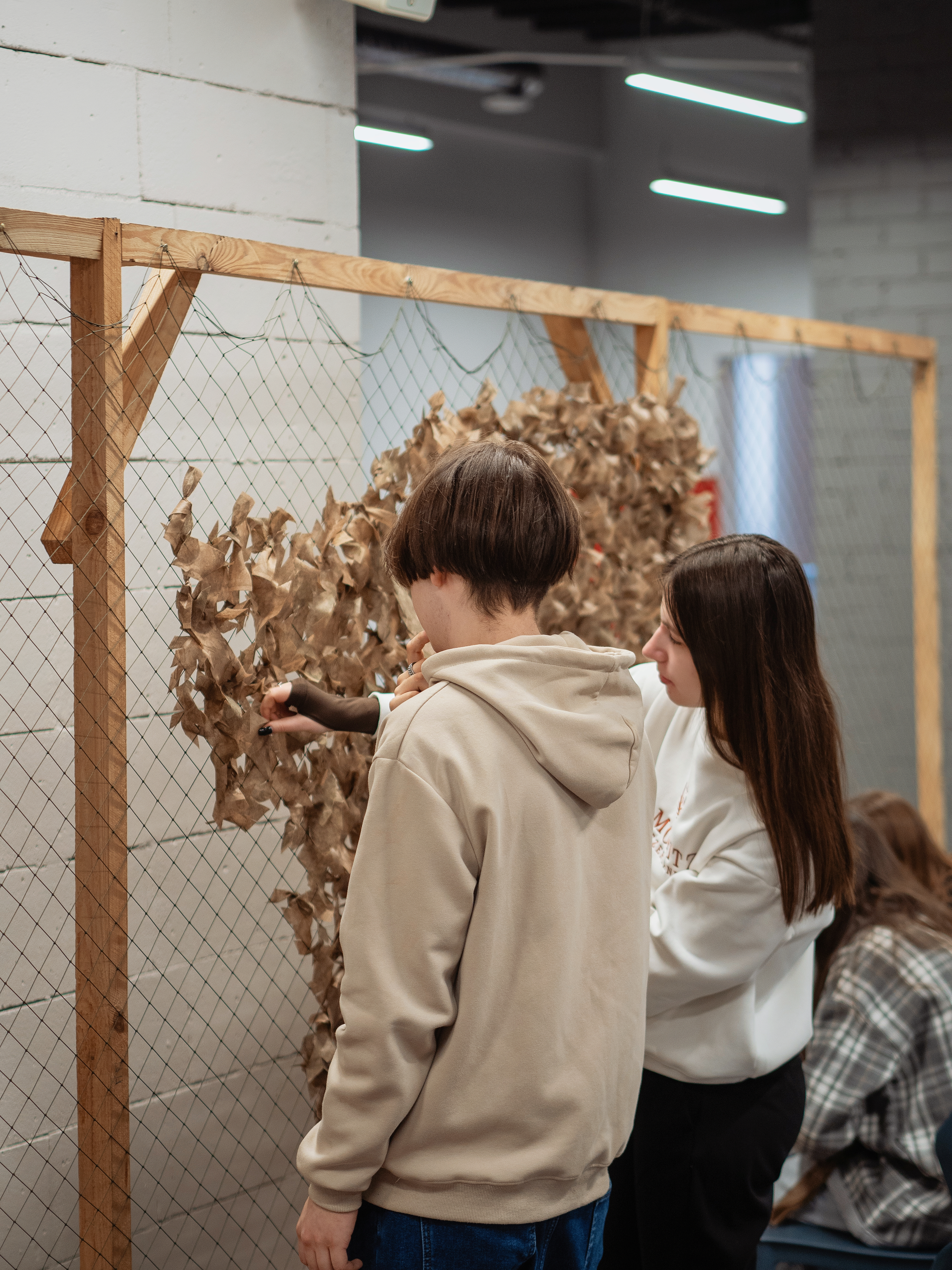 У святковий день молодь об’єдналася заради важливої справи — підтримки українських військових. Кожна стрічка тканини, кожен вузлик на сітці — це внесок у безпеку наших захисників на передовій.