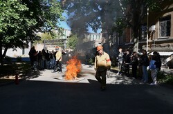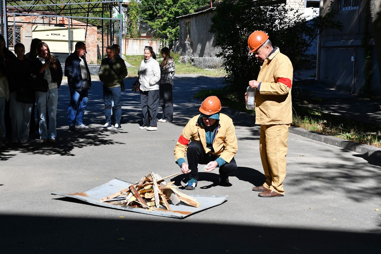 Під час практичної частини тренування учасники відпрацювали навички гасіння умовної пожежі з використанням первинних засобів пожежогасіння.