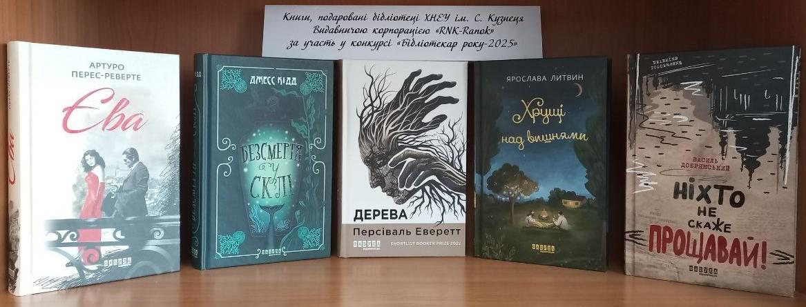 Підтримку конкурсу надала видавнича корпорація «RNK – Ranok». Керівник відділу по роботі з бібліотеками харківського видавництва «Ранок» Євгеній ОЛЕКСАНДРОВ передав бібліотеці ХНЕУ ім. С. Кузнеця книги художньої літератури — новинки видавництва.