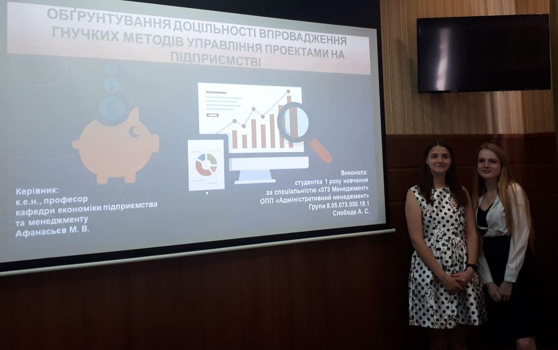 27 червня 2019 року відбувся публічний захист консультаційних проектів студентів 1 курсу магістратури зі спеціальності 051 «Економіка» – Петренко Ірини Сергіївни та 073 «Адміністративний менеджмент» – Слободи Анастасії Сергіївни, виконаних під керівництвом професора кафедри економіки підприємства та менеджменту М. В. Афанасьєва.