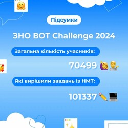 17 травня завершився Всеукраїнський чемпіонат із підготовки до НМТ «ЗНО BOT Challenge» у чат-боті в додатку Telegram із таких предметів: