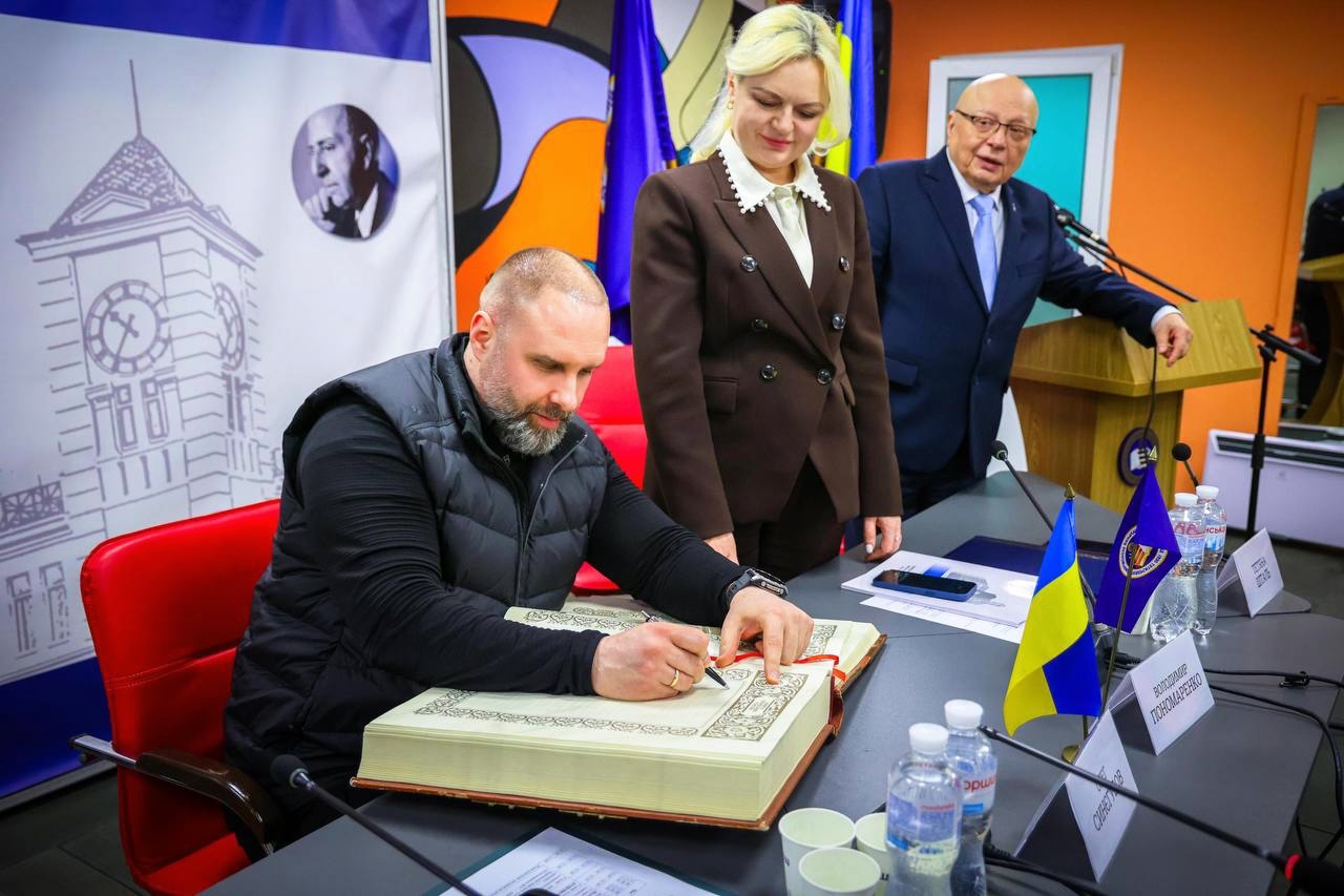 Начальник Харківської обласної військової адміністрації Олег Синєгубов залишив пам’ятний запис у книзі почесних гостей університету.