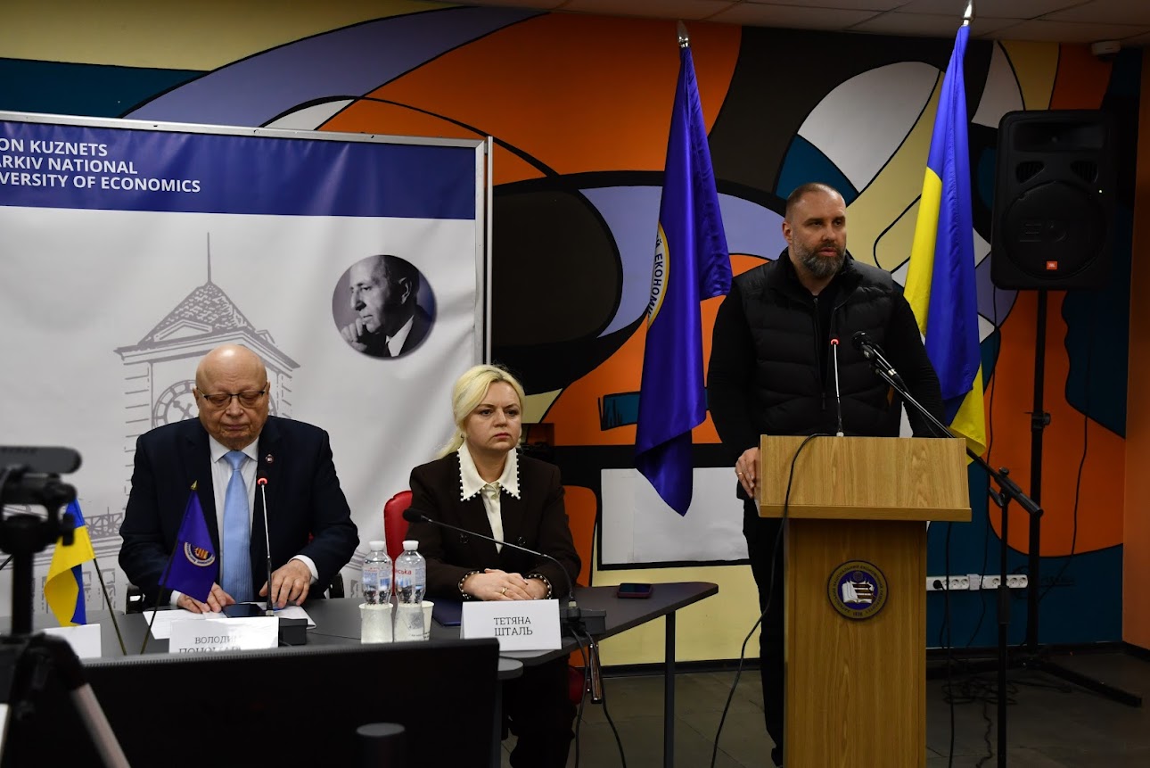 У Харківському національному економічному університеті імені Семена Кузнеця відбулося засідання Вченої ради за участі начальника Харківської обласної військової адміністрації Олега Синєгубова та голови Харківської обласної ради Тетяни Єгорової-Луценко.