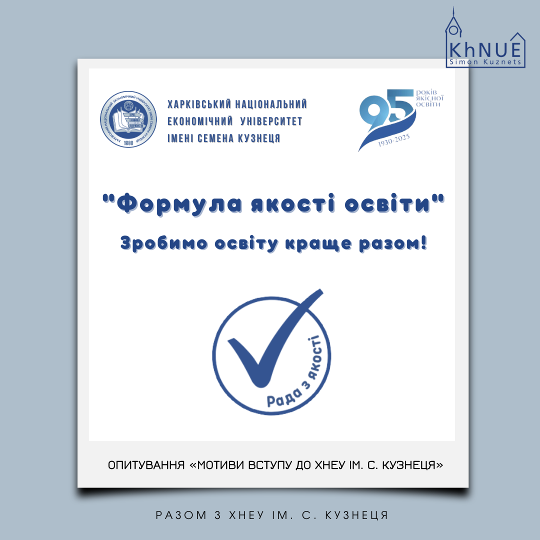 Ваш внесок стане важливою частиною процесу постійного вдосконалення якості освіти в ХНЕУ ім. С. Кузнеця.