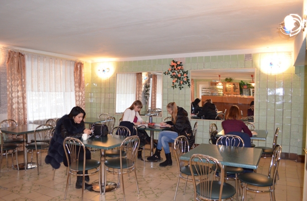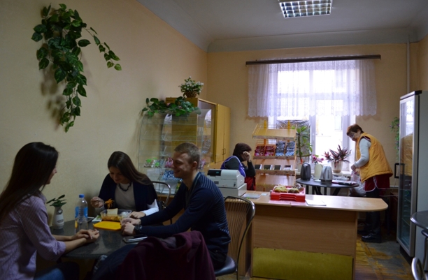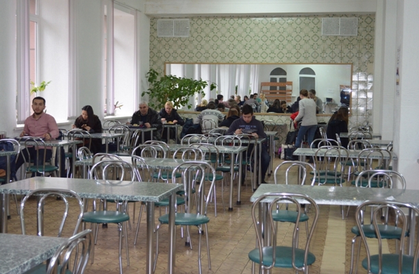 Їдальня (цокольний поверх головного корпусу) працює з 10-30 до 16-00